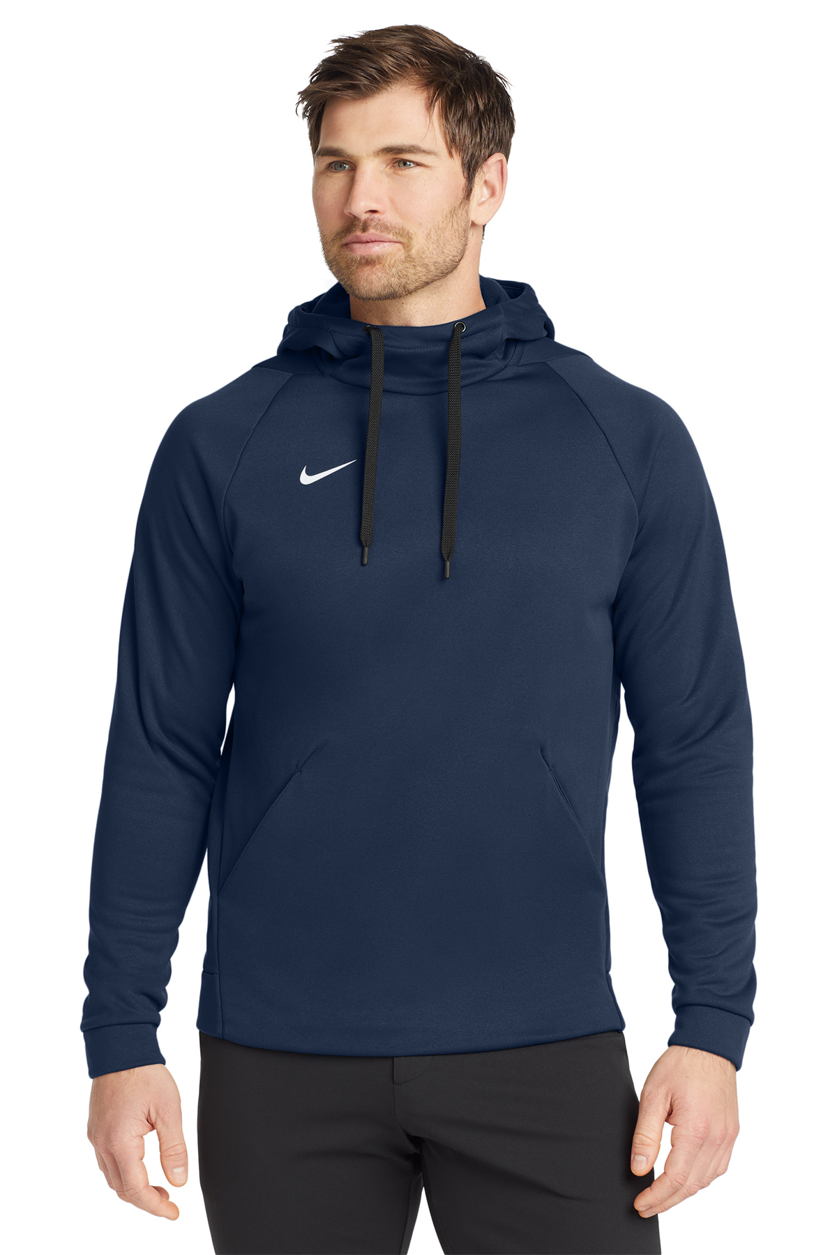 7.4-ounce, 100% polyester Therma-FIT fabric Three-panel hood Front pouch pocket Open cuffs Contrast heat transfer Swoosh logo on right chest