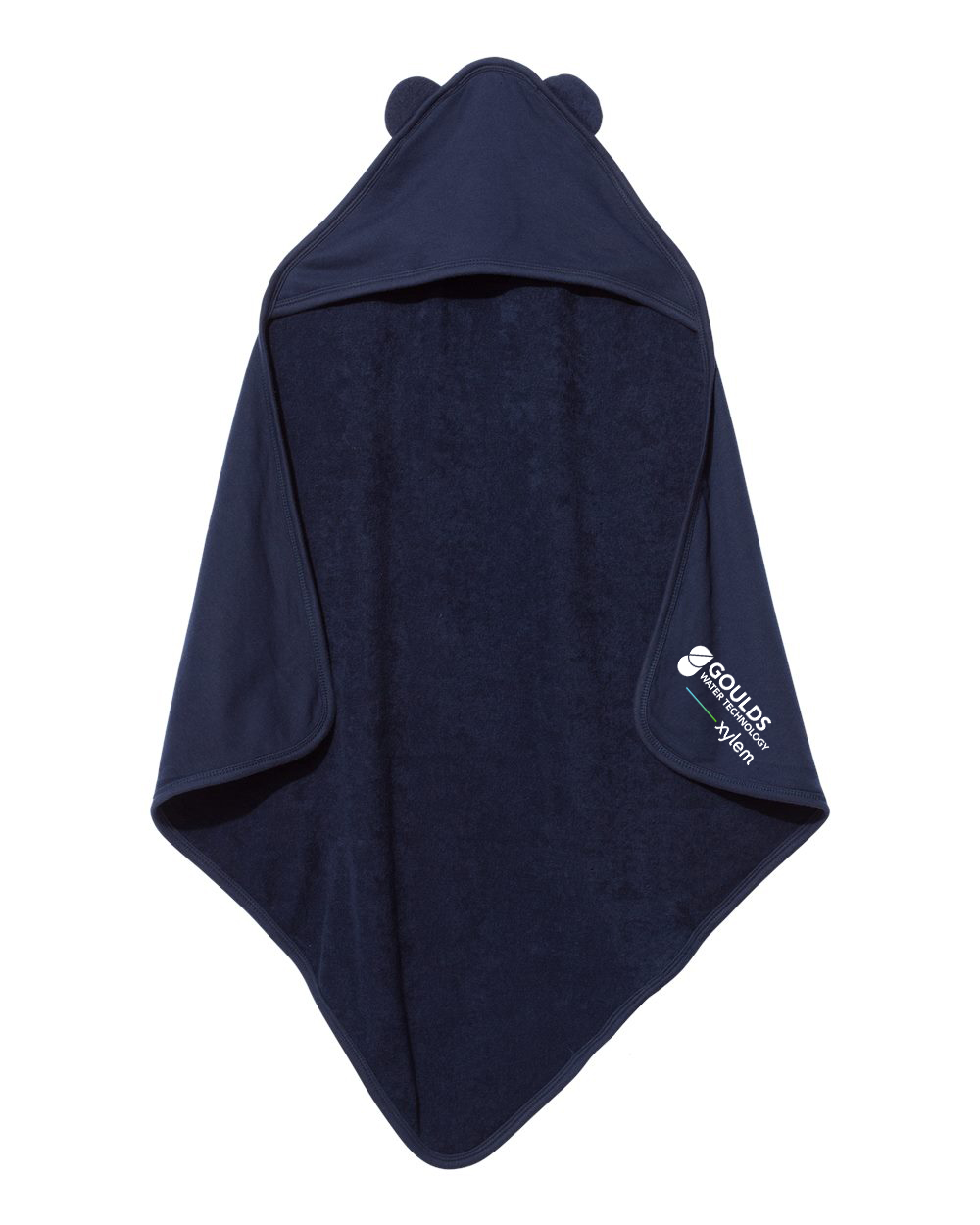 6.2 oz./yd², 50/50 combed ring-spun cotton/polyester terry cloth Self fabric binding on edges 2-ply hood and ears Rounded corners CPSIA compliant tracking label on side seam Easy Tear™ label