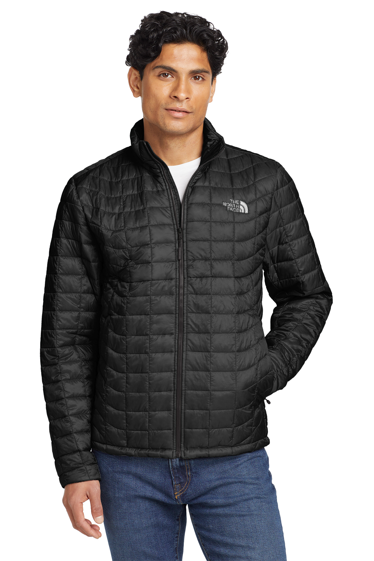 15D 33 g/m2 100% nylon with non-PFC durable water-repellent (DWR) finish 15D 33 g/m2 100% recycled nylon with non-PFC durable water-repellent (DWR) finish (TNF Matte Black) 11.5 g/ft2 ThermoBall™ synthetic insulation made with 100% recycled polyester polyfill Interior left chest zippered pocket Interior elastic cuffs Secure-zip hand pockets Stows in left hand pocket Contrast embroidered The North Face logo on left chest and right back shoulder Hem cinch-cord BENEFITS DURABLE WATER-REPELLENT: DWR is applied to the face of the fabric to provide the first line of defense against wet weather. INSULATED: Insulation traps hot air for reduced heat loss and increased warmth. PACKABLE/STOWABLE: Highly compressible layer for emergency use or travel. SYNTHETIC: Designed to replicate the qualities of down, but retain them even when wet.